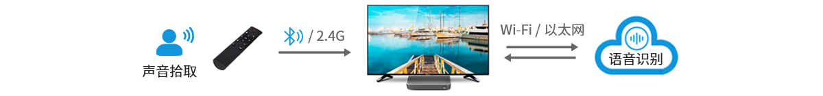 對(duì)于智能語(yǔ)音遙控器,用戶按下語(yǔ)音識(shí)別鍵后,遙控器告知電視啟動(dòng)語(yǔ)音識(shí)別功能,同時(shí)拾取用戶語(yǔ)音,將音頻數(shù)據(jù)發(fā)送至電視,電視根據(jù)云端識(shí)別結(jié)果執(zhí)行節(jié)目搜索或打開相關(guān)應(yīng)用。