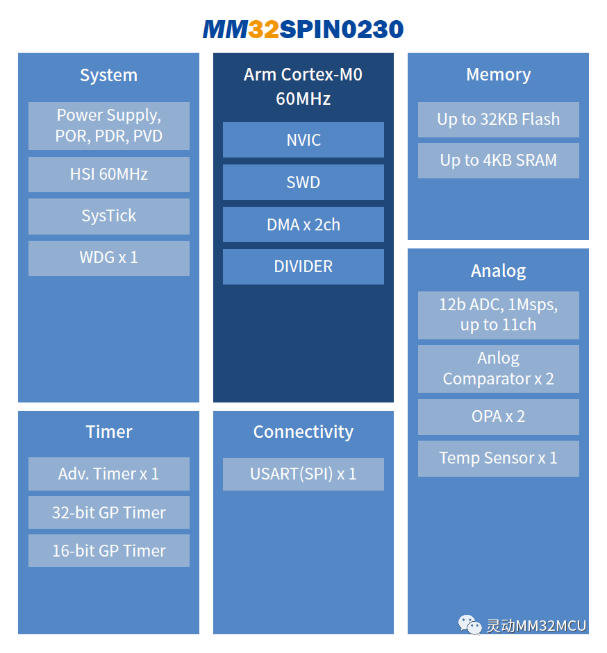 MM32SPIN0230的資源配置