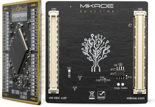 MCU卡是標準化的附加板,可以非常簡單地在配有MCU卡插槽的開發板上安裝和更換MCU。通過引入新的單片機卡標準,我們確保了開發板與任何受支持的MCU之間的絕對兼容性,無論其引腳號和兼容性如何。MCU卡配備了兩個168針夾層連接器,從而使它們甚至可以支持具有極高引腳數的MCU。遵循Clickboard™產品線公認的即插即用概念,其巧妙的設計允許非常簡單的使用。