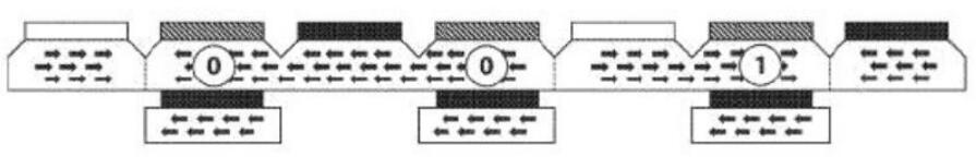 為了寫入單個位,電流通過存儲線,并且多鐵性元件和自由層的相互作用確定層之間的反平行極性為“ 1”(高電阻),層之間的平行極性為“ 0” (低電阻)。然后,通過減小存儲線和多鐵性元件之間的交換偏壓來更改存儲域的磁化強度(請參見上圖)。存儲器域是可獨立寫的,只需要一個電流輸入即可存儲數據。這大大降低了能耗和寫入周期所需的時間,從而提高了成本和性能效率。