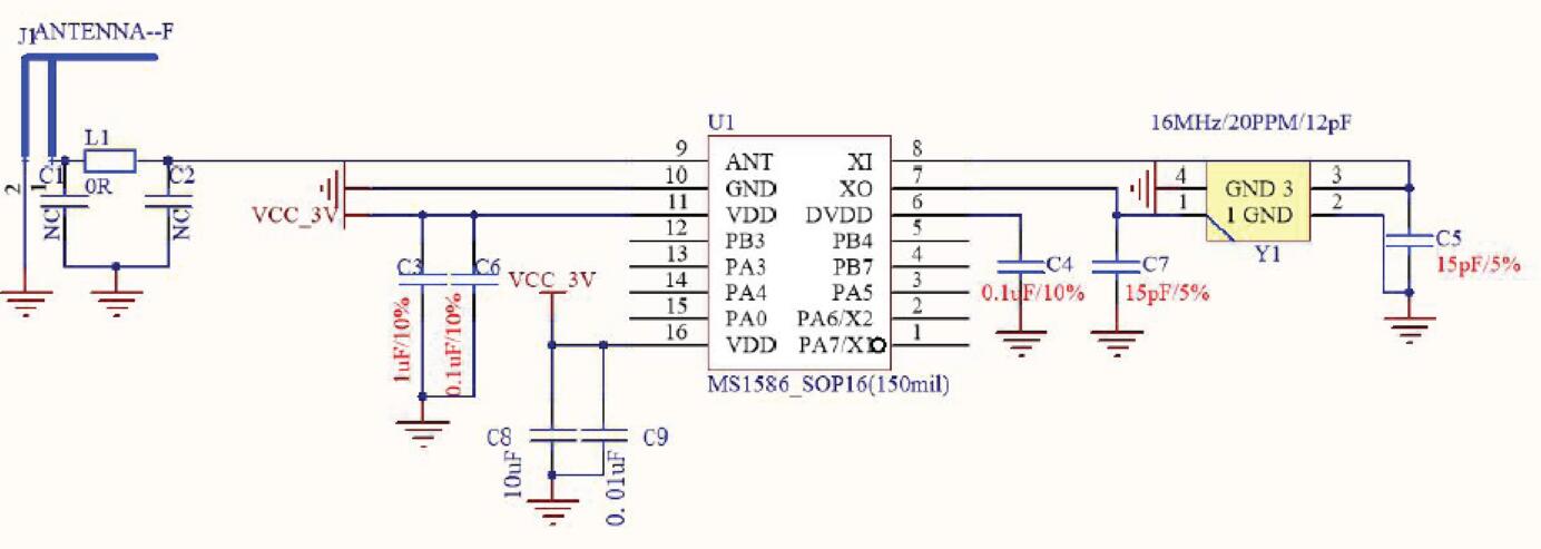 MS1586包含8位單片機(jī)和低功耗、低成本的BLE收發(fā)器,內(nèi)部集成了發(fā)射機(jī)、接收機(jī)、GFSK調(diào)制解調(diào)器和BLE基帶處理。遵循BLE廣播通道通信,具有成本低、體積小、控制方便等優(yōu)點。